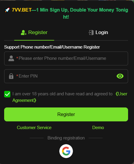 - Launch your browser and visit 7VV Bet Game’s official website.