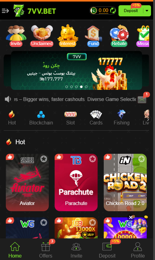 7VV Bet Game has a fantastic array of different types of games including slot machines, live dealer games, crash modes, and fishing games, besides the usual table classics like baccarat and roulette. Every game has its own gameplay and winning chances that amaze you every time you enter.