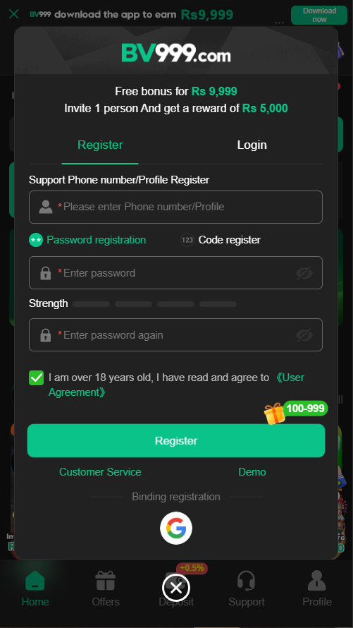 How to create an account on the BV999 Game?