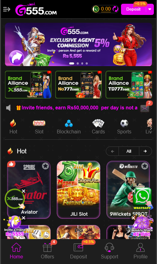 Unlike gambling apps of the retained style, the G555 project focuses on games that mix skill and chance. This approach lets players try different ways to play and earn. Moreover, the app has a simple interface and acts as an online social network. Users can explore various interactive game categories, from slots and roulette to mini-games like color prediction, ludo, and lucky spin.