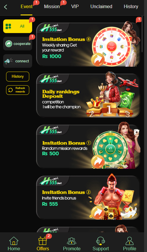Their presentation is easy-going; a neat interface assists both novices and skilled people in navigating effortlessly. H555 is also unique because of its dependable deposit and withdrawal system, which supports local methods like JazzCash, EasyPaisa, and bank transfers. Moreover, the players get advantages in the form of bonuses, daily rewards, and referral programs, which make their experience even better. Given the safe transactions, glitch-free performance, and the variety of features, H555 Game has turned into a favorite of those who seek fun and profits at the same time.